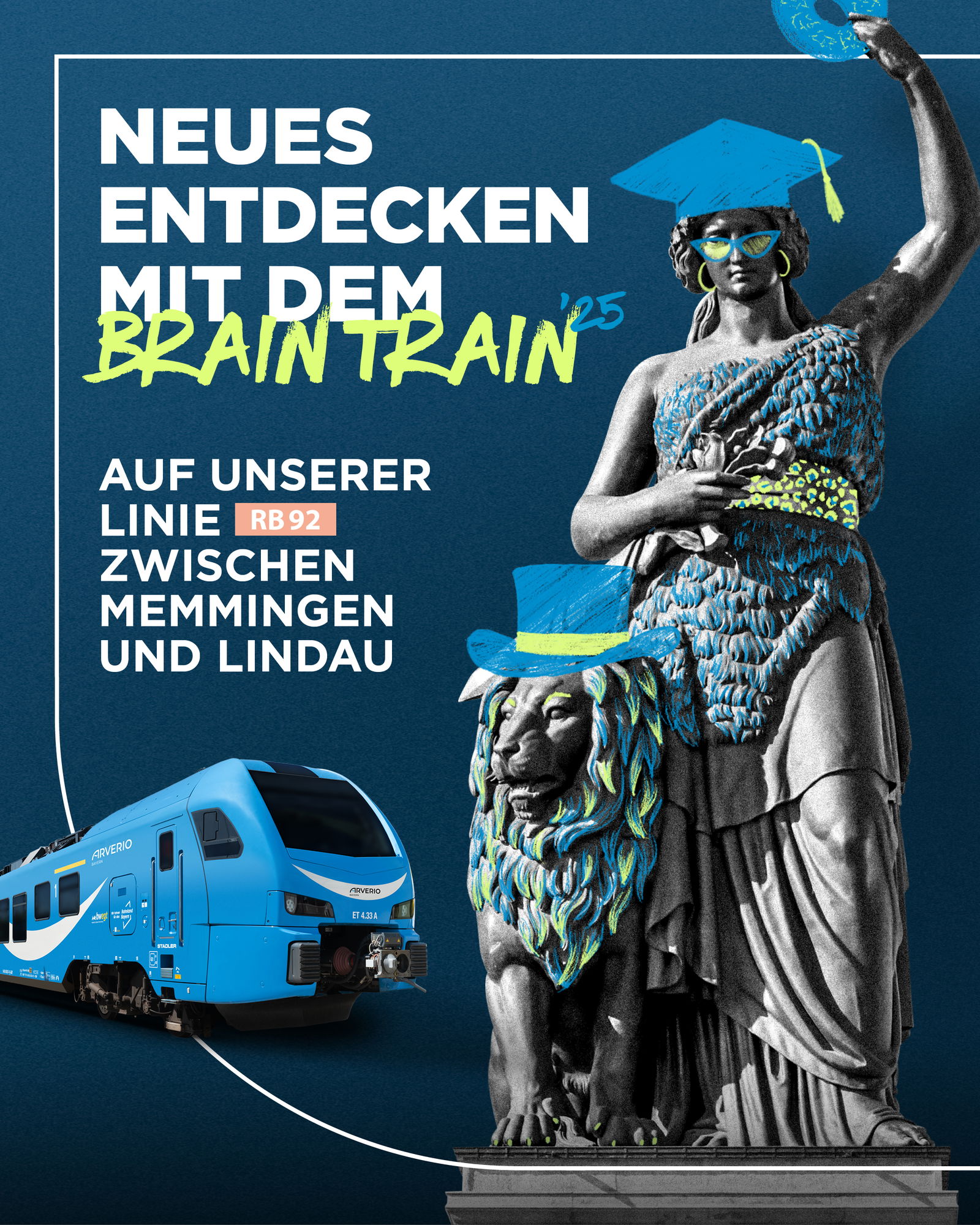 Die Linien RE 80 (München – Augsburg – Donauwörth – Würzburg) und RB 92 (Memmingen – Kißlegg – Lindau-Reutin) bringen dich zu 10 neuen spannenden Locations mit Mehrwert. Und nice Gewinne gibt es auch!